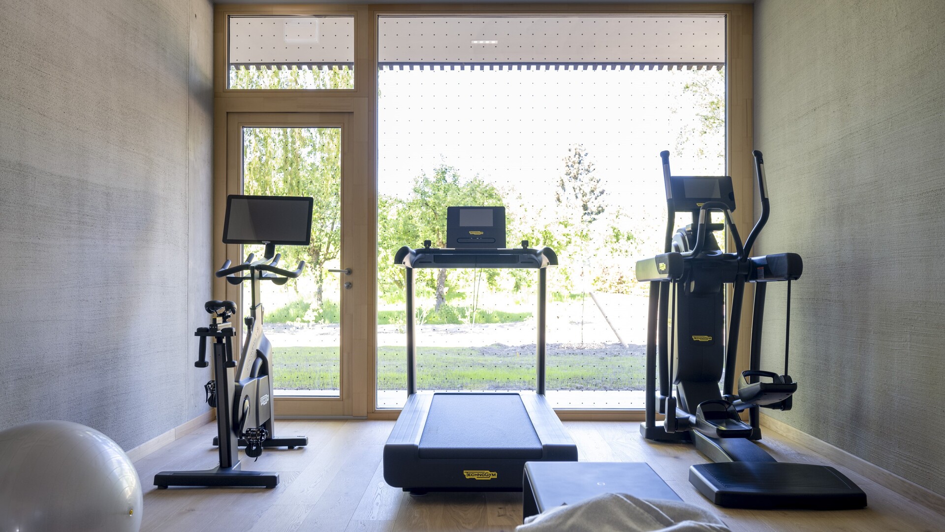 The large glass front provides a direct view of our idyllic orchard, creating an inspiring and peaceful atmosphere for your workout. On request, we can also offer you personal training that is individually tailored to your goals and needs.